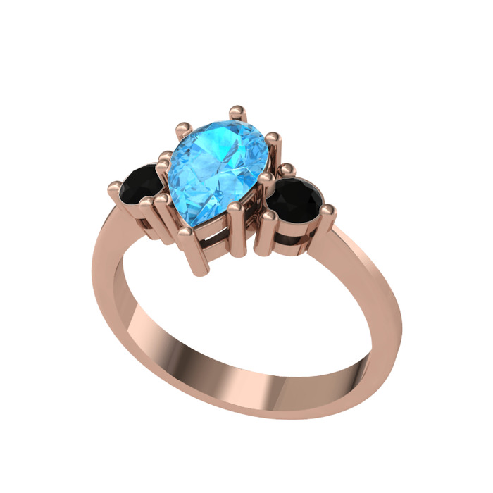 Akuamarin ve siyah zirkon 18 ayar rose altın yüzük