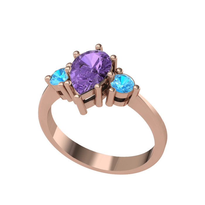Ametist ve akuamarin 925 ayar rose altın kaplama gümüş yüzük