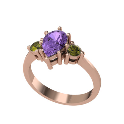 Ametist ve peridot 18 ayar rose altın yüzük