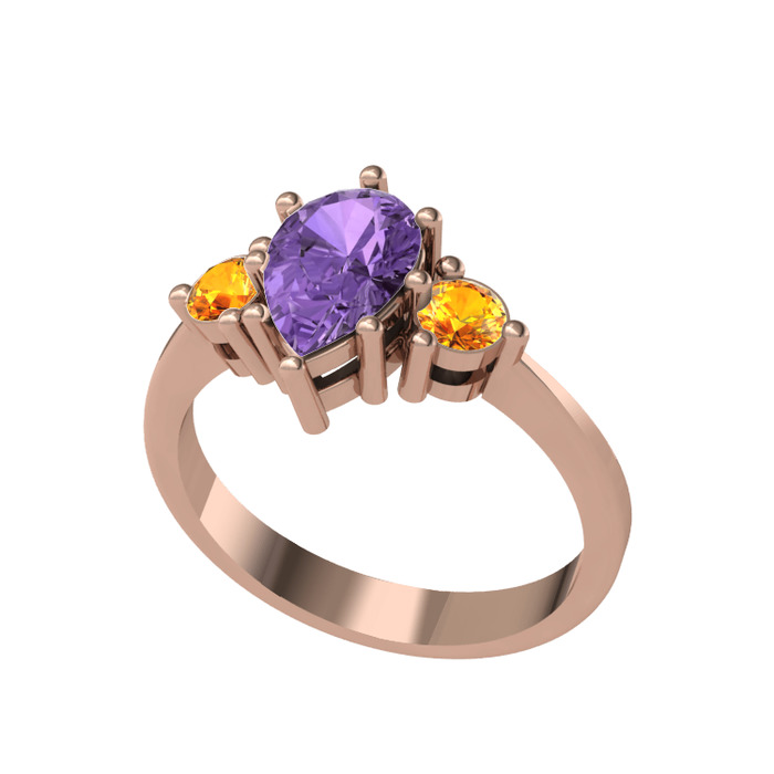 Ametist ve sitrin 14 ayar rose altın yüzük