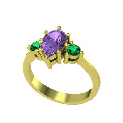 Ametist ve yeşil kuvars 14 ayar altın yüzük