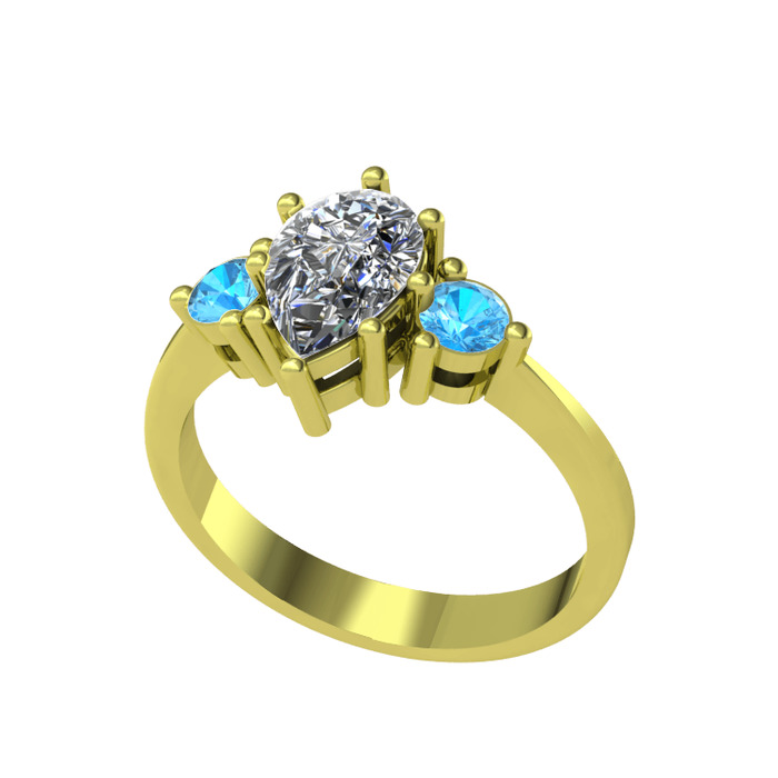 Beyaz zirkon ve akuamarin 925 ayar altın kaplama gümüş yüzük