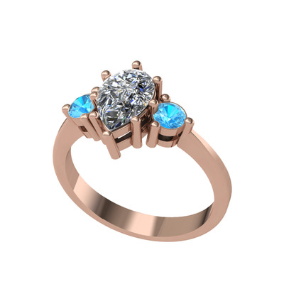 Beyaz zirkon ve akuamarin 925 ayar rose altın kaplama gümüş yüzük