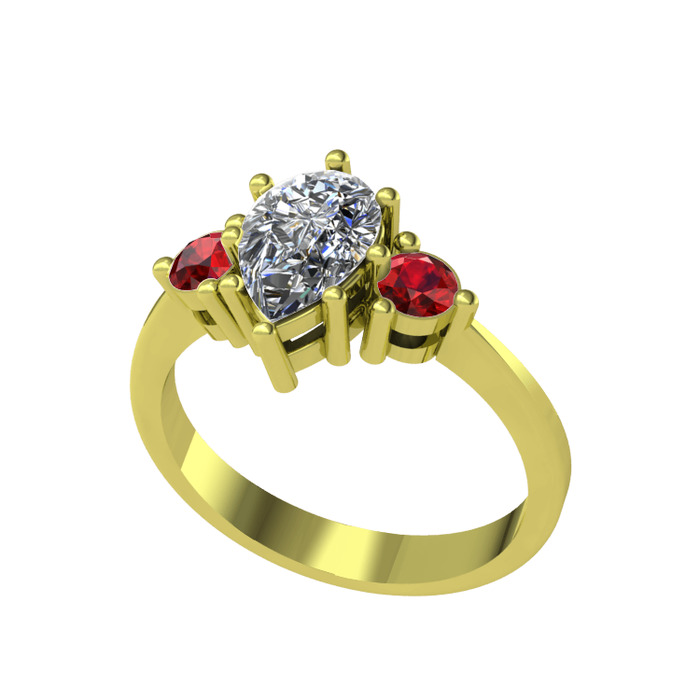 Beyaz zirkon ve garnet 18 ayar altın yüzük