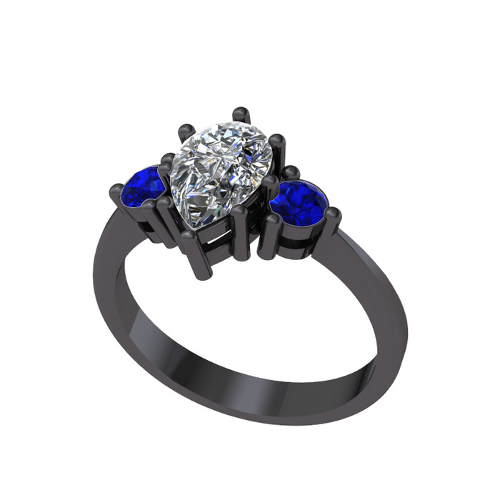 Beyaz zirkon ve lab safir 925 ayar siyah rodyum kaplama gümüş yüzük