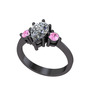 Beyaz zirkon ve pembe kuvars 925 ayar siyah rodyum kaplama gümüş yüzük