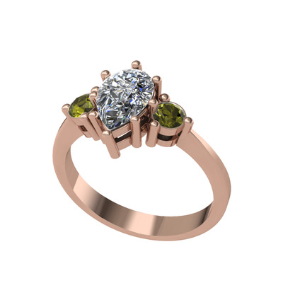 Beyaz zirkon ve peridot 14 ayar rose altın yüzük