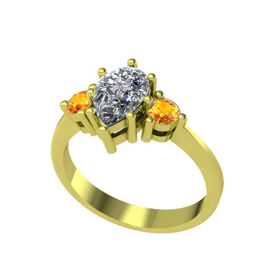 Beyaz zirkon ve sitrin 8 ayar altın yüzük