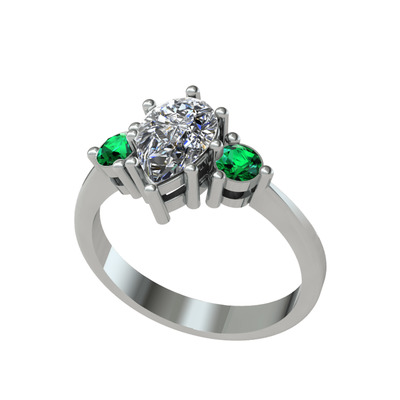 Beyaz zirkon ve yeşil kuvars 18 ayar beyaz altın yüzük