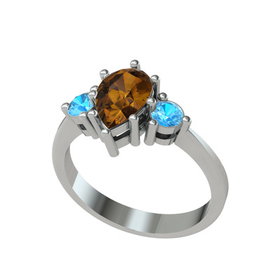 Dumanlı kuvars ve akuamarin 8 ayar beyaz altın yüzük