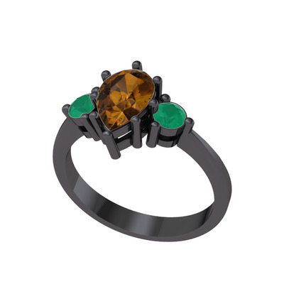 Dumanlı kuvars ve kök zümrüt 925 ayar siyah rodyum kaplama gümüş yüzük
