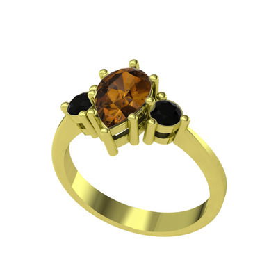 Dumanlı kuvars ve siyah zirkon 925 ayar altın kaplama gümüş yüzük