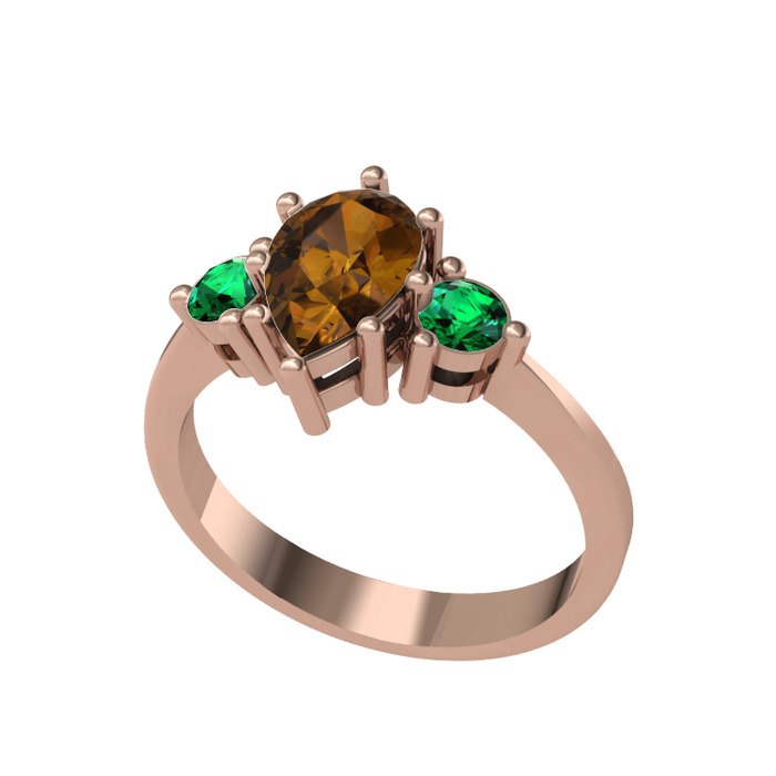 Dumanlı kuvars ve yeşil kuvars 14 ayar rose altın yüzük