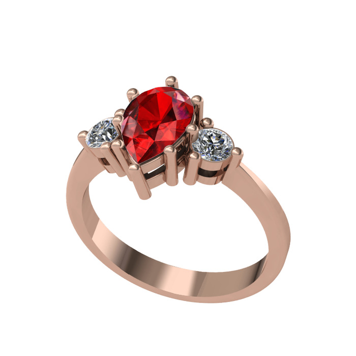 Garnet ve beyaz zirkon 925 ayar rose altın kaplama gümüş yüzük