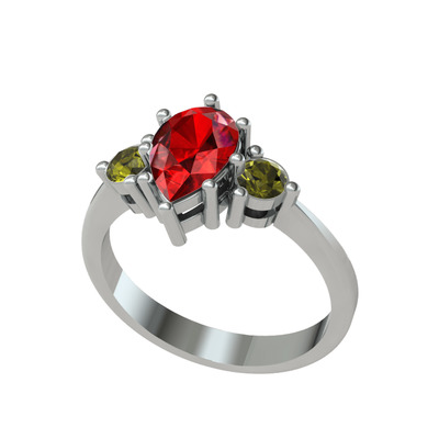 Garnet ve peridot 8 ayar beyaz altın yüzük