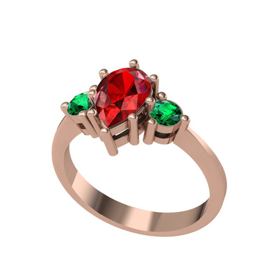 Garnet ve yeşil kuvars 14 ayar rose altın yüzük