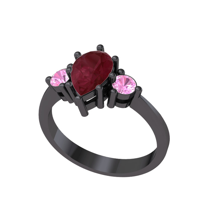Kök yakut ve pembe kuvars 925 ayar siyah rodyum kaplama gümüş yüzük