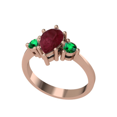 Kök yakut ve yeşil kuvars 14 ayar rose altın yüzük
