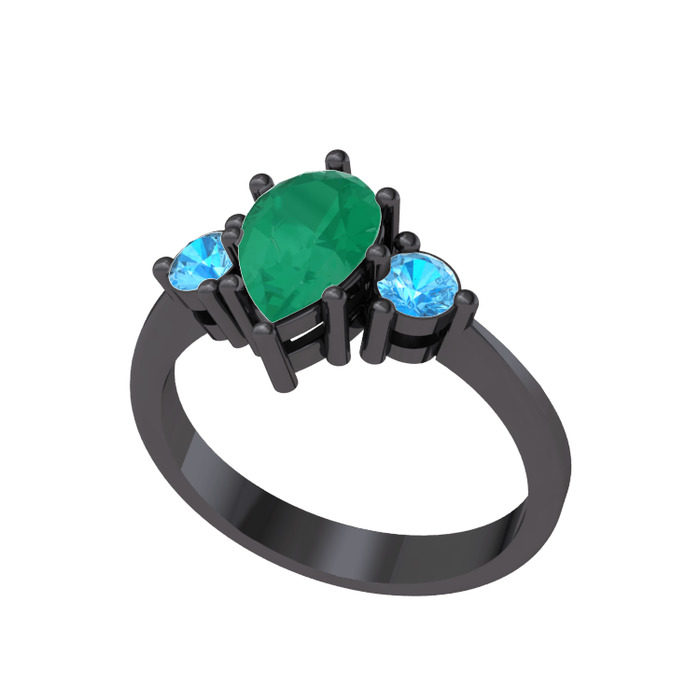 Kök zümrüt ve akuamarin 925 ayar siyah rodyum kaplama gümüş yüzük