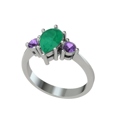 Kök zümrüt ve ametist 18 ayar beyaz altın yüzük