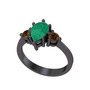 Kök zümrüt ve dumanlı kuvars 925 ayar siyah rodyum kaplama gümüş yüzük
