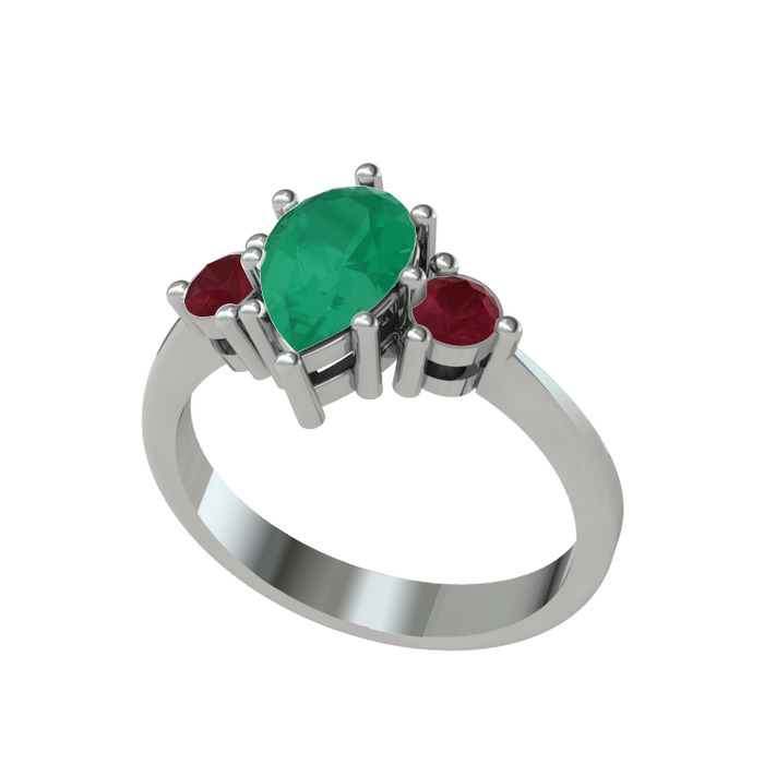 Kök zümrüt ve kök yakut 8 ayar beyaz altın yüzük