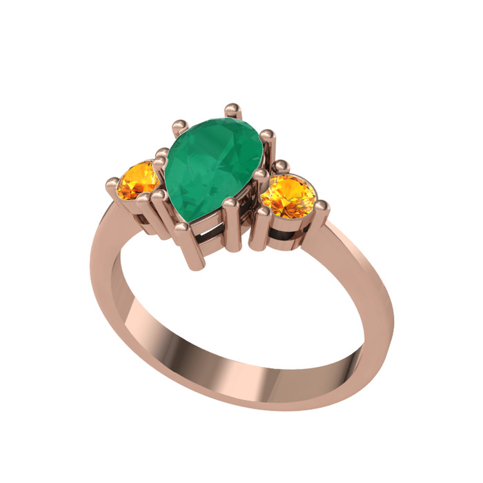 Kök zümrüt ve sitrin 14 ayar rose altın yüzük
