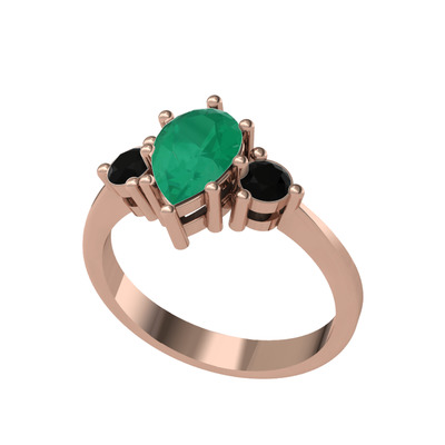 Kök zümrüt ve siyah zirkon 18 ayar rose altın yüzük