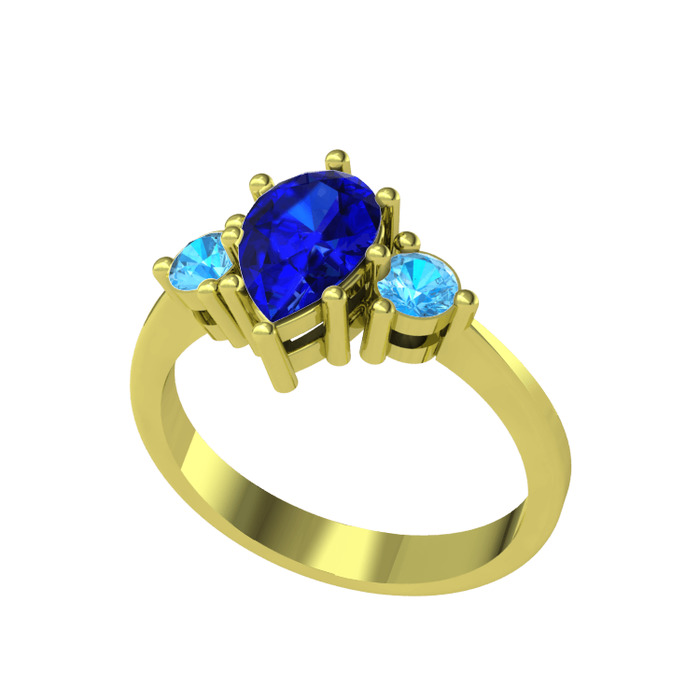Lab safir ve akuamarin 925 ayar altın kaplama gümüş yüzük