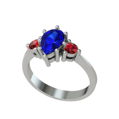 Lab safir ve garnet 18 ayar beyaz altın yüzük