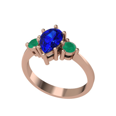 Lab safir ve kök zümrüt 14 ayar rose altın yüzük