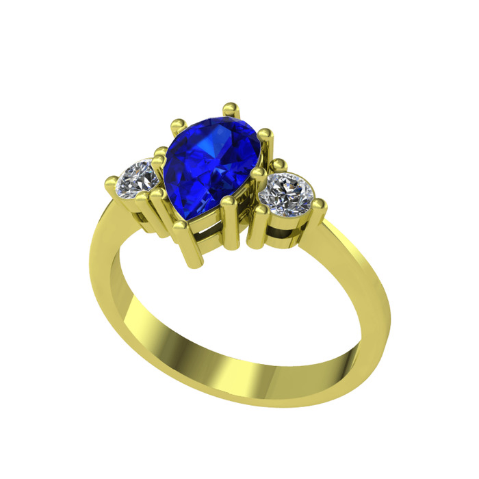 Lab safir ve pırlanta 18 ayar altın yüzük (0.32 karat)