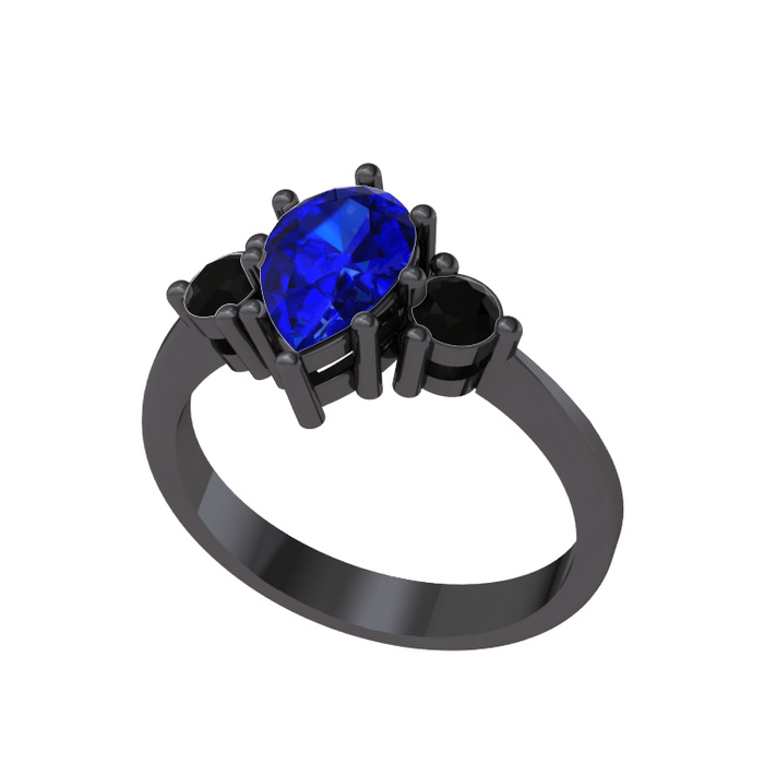 Lab safir ve siyah zirkon 925 ayar siyah rodyum kaplama gümüş yüzük