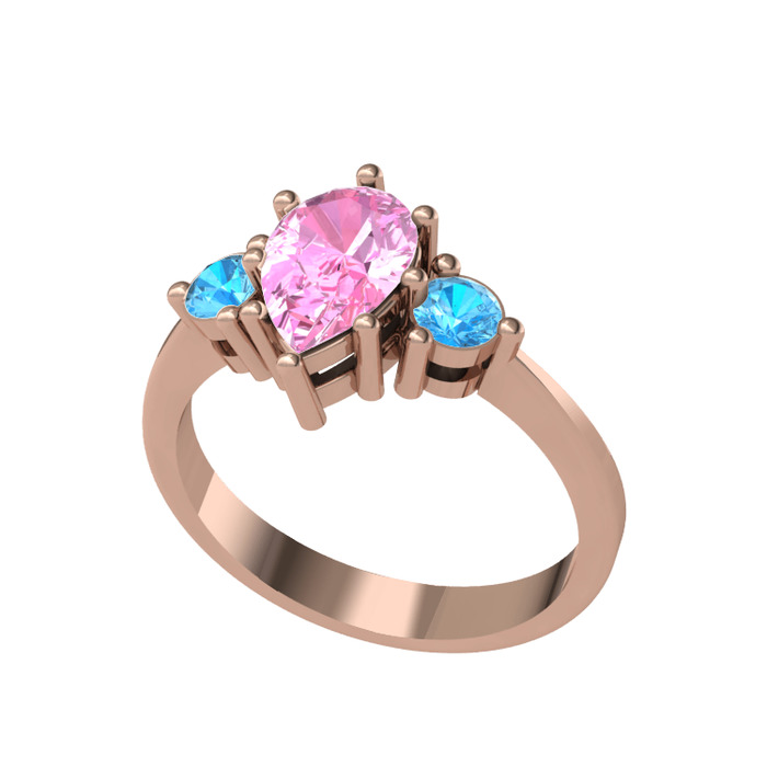 Pembe kuvars ve akuamarin 14 ayar rose altın yüzük