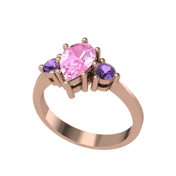 Pembe kuvars ve ametist 925 ayar rose altın kaplama gümüş yüzük