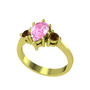 Pembe kuvars ve dumanlı kuvars 14 ayar altın yüzük