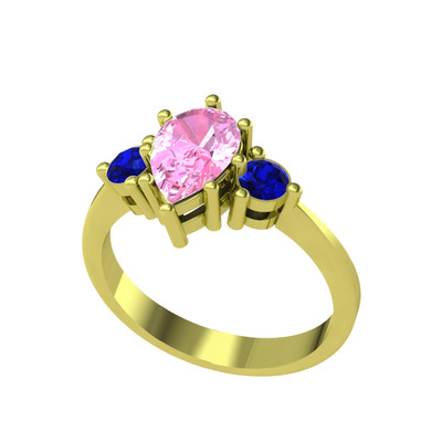 Pembe kuvars ve lab safir 18 ayar altın yüzük