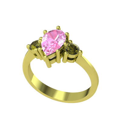 Pembe kuvars ve peridot 14 ayar altın yüzük