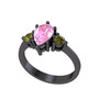 Pembe kuvars ve peridot 925 ayar siyah rodyum kaplama gümüş yüzük