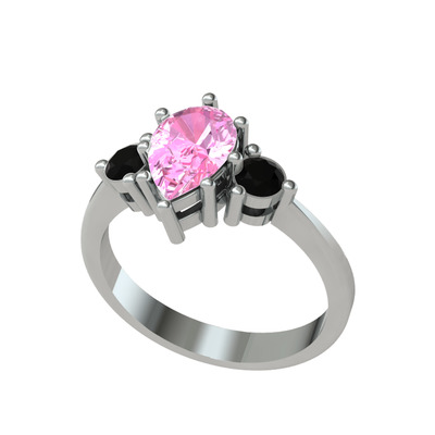 Pembe kuvars ve siyah zirkon 18 ayar beyaz altın yüzük