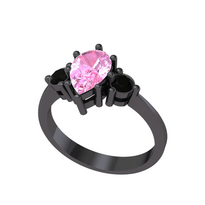 Pembe kuvars ve siyah zirkon 925 ayar siyah rodyum kaplama gümüş yüzük