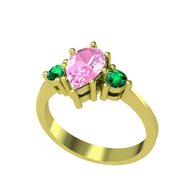 Pembe kuvars ve yeşil kuvars 14 ayar altın yüzük