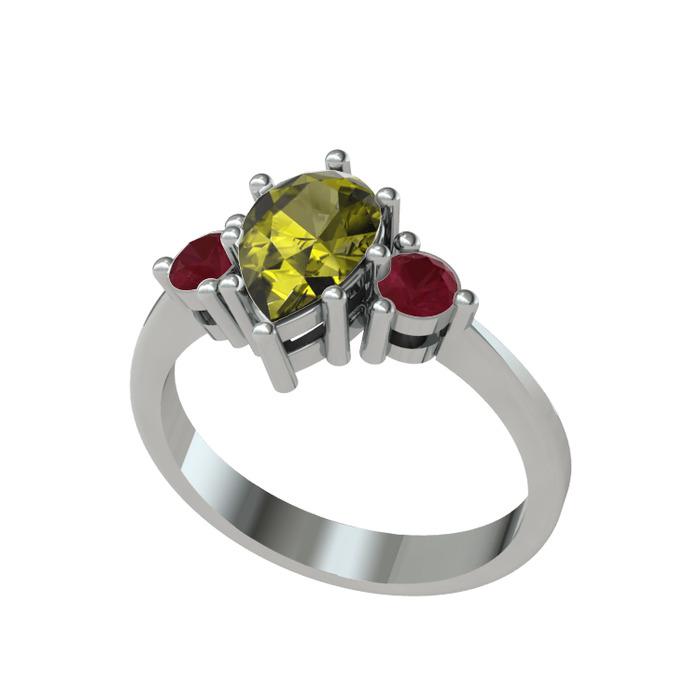 Peridot ve kök yakut 925 ayar gümüş yüzük