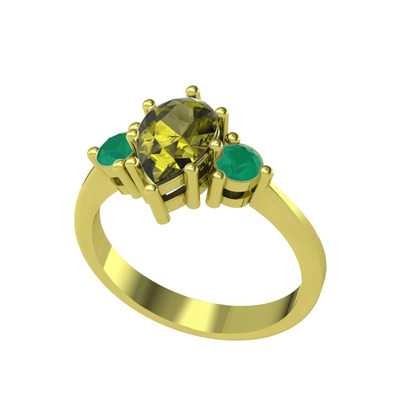 Peridot ve kök zümrüt 14 ayar altın yüzük