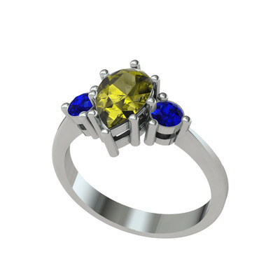 Peridot ve lab safir 925 ayar gümüş yüzük