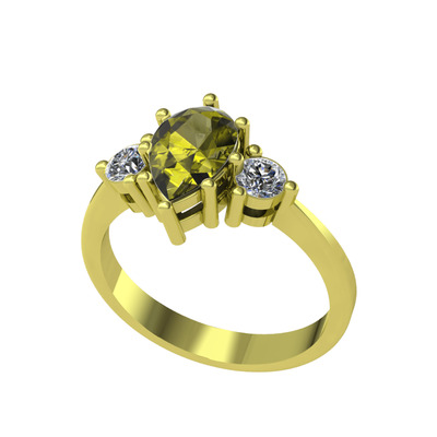 Peridot ve pırlanta 18 ayar altın yüzük (0.32 karat)