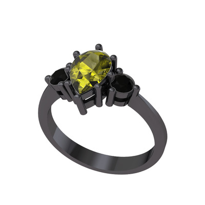 Peridot ve siyah zirkon 925 ayar siyah rodyum kaplama gümüş yüzük