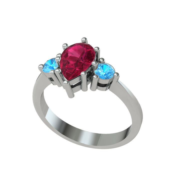 Rodolit garnet ve akuamarin 925 ayar gümüş yüzük