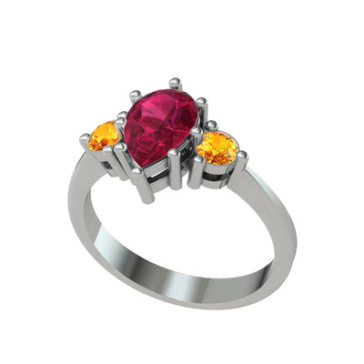 Rodolit garnet ve sitrin 18 ayar beyaz altın yüzük