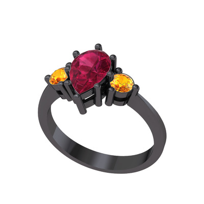 Rodolit garnet ve sitrin 925 ayar siyah rodyum kaplama gümüş yüzük